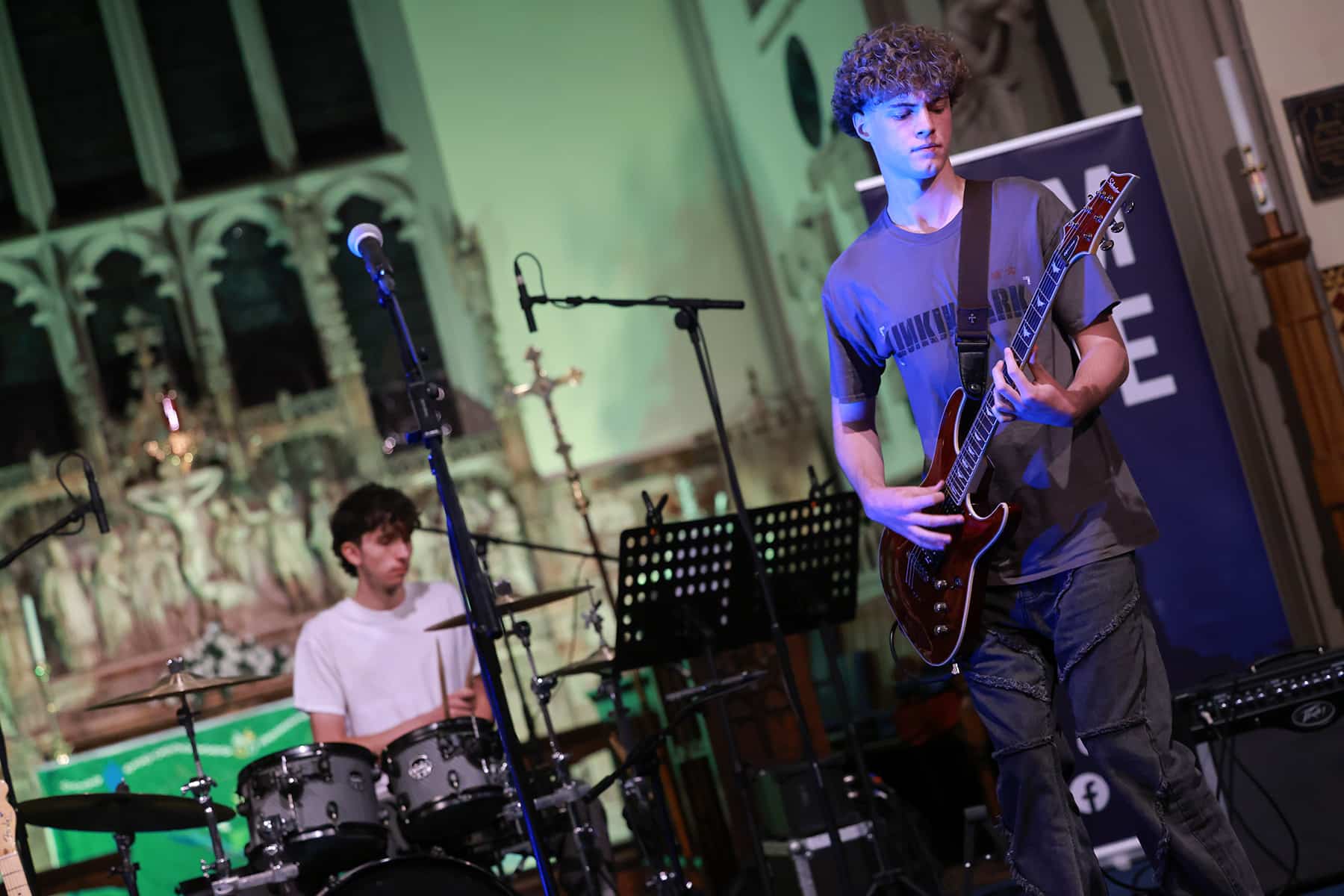 “From a young age Joshua‘s heart and lung condition has stopped him from keeping up with his peers. When his friends would go out and play football and do other sporting activities, Joshua’s time was spent having regular hospital appointments, operations and on a lifetime of medication. However, his love of music and his passion for playing the guitar has meant that he now has the confidence to join a rock and pop group, organised by Stoke on Trent city council. Music has finally helped him feel he can be part of a team. Joshua thoroughly enjoys his guitar lessons at ODM with Matt and he is constantly practicing his skills. He always tries his best and enjoys being challenged, resulting in him achieving a distinction in his guitar grade exam. His uncle is part of a band and Joshua regularly helps backstage with the lightning. At Christmas he and his cousin, who plays the drums and is also a student at ODM were given the opportunity to play with the band. Performing Summer of 69, Joshua as lead guitar and his cousin on drums. Music has helped Joshua become a confident young man. His heart and lung condition Is not going to stop him achieve his goals when it comes to music.”