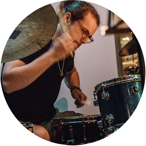 Joe started to learn the drums at Primary School when he was 8 years old and was immediately hooked. He learnt from two of the most renowned Staffordshire drummers at the time, Paul Murfin and Ken Adams. Both of whom had huge experience as working drummers and they both had huge influence on him. He was taught in all styles, various technical and motion concepts and how to read notation.